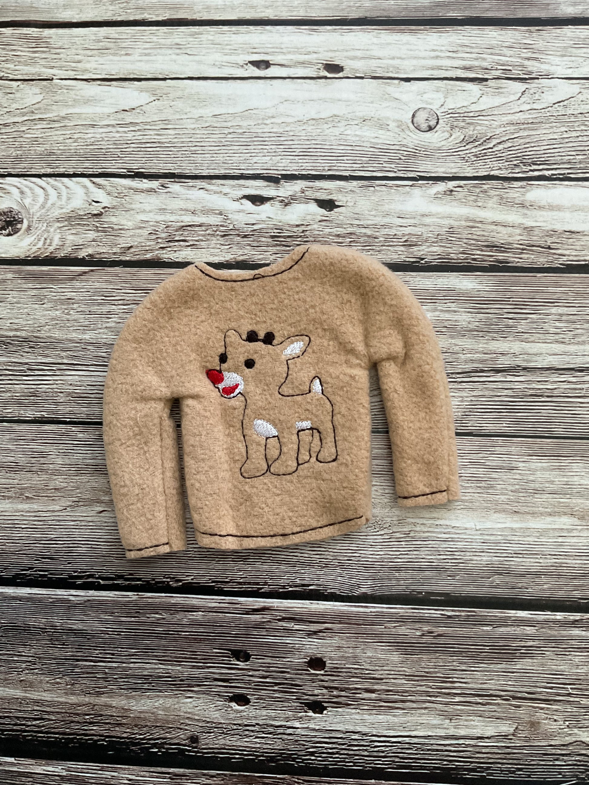 This festive holiday sweater for elves and dolls features a cute reindeer design with a signature red nose. Keep your elf looking stylish and warm all season long. Mix and match with other holiday outfits for endless festive options.