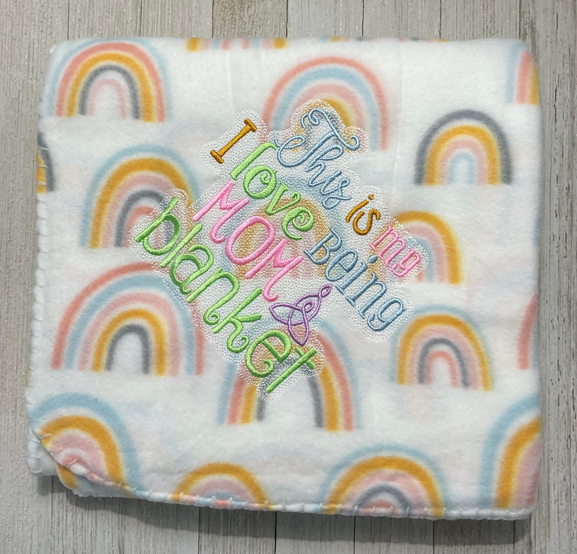 Experience the love and warmth of motherhood with our I Love Being a Mom Blanket. Our pastel rainbow lap size blanket is expertly embroidered with the sentiment "I Love Being a Mom", making it a perfect addition to any mom's collection. Wrap yourself in comfort and pride with this timeless design.