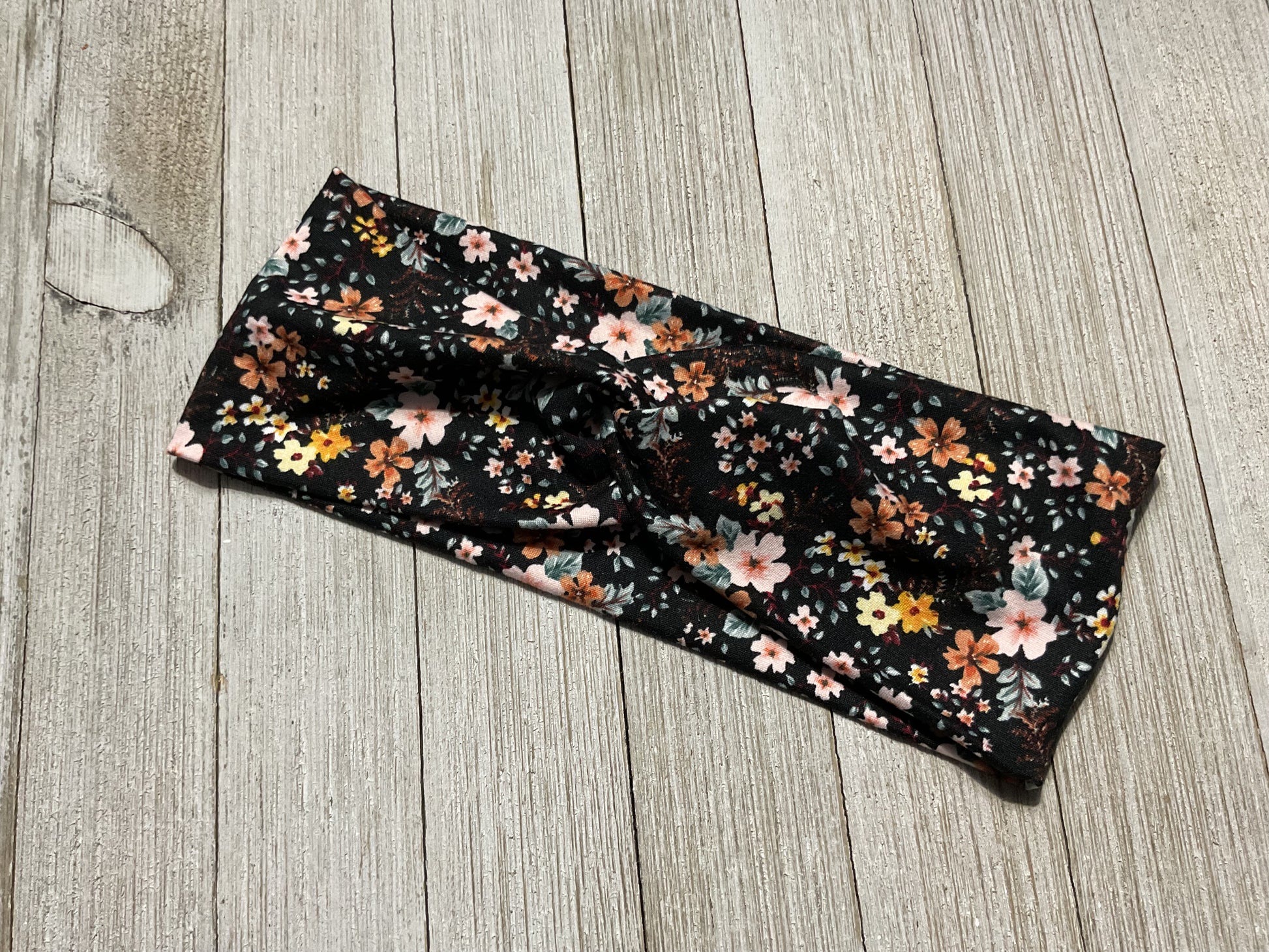 Wide Twisted black with fall floral headband for sports, yoga, workouts, facials, fashionable and comfortable